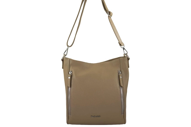 Praktyczna skórzana torebka na ramię w kolorze beżowym jest wykonana ze skóry naturalnej licowej. Szukasz wygodnej torebki mieszczącej niezbędne rzeczy do pracy, na uczelnię lub krótki wyjazd? Proponowaną w najnowszej kolekcji wygodnych i pojemnych torebek zaprojektowano tak, aby zmieściła dokumenty, notatki, portfel, telefon oraz kosmetyki. Poręczne wewnętrzne lub zewnętrzne kieszenie doskonale utrzymają porządek wewnątrz i z łatwością znajdziesz to czego szukasz - wszystko będzie na swoim miejscu. Praktyczna skórzana torebka na ramię na wygodnej długości regulowanym pasku to propozycja dla Pań ceniących gustowne dodatki codziennej swobodnej garderoby. Gwarantujemy zadowolenie z zakupionych produktów - najnowsze trendy, stonowane kolory oraz subtelne ozdoby przemawiają za wyborem torebki oraz portfela w naszym sklepie.