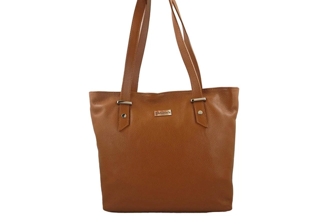 Shopper bag - Włoska duża torebka miejska skórzana - Brązowa jasna