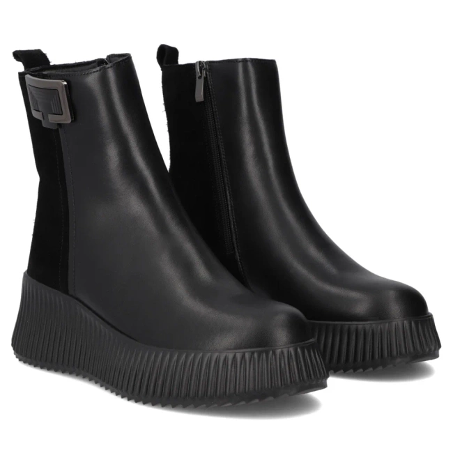 Skórzane botki na platformie Filippo to propozycja dla kobiet, które szukają wygodnego i praktycznego obuwia na sezon jesienno-zimowy. Wykonane z naturalnej skóry, dopasowują się do kształtu stopy, a dzięki podwyższonej podeszwie zapewniają stabilność podczas codziennego użytkowania. Zamek błyskawiczny ułatwia zakładanie i zdejmowanie butów, a elastyczne wstawki dbają o odpowiednie dopasowanie cholewki.