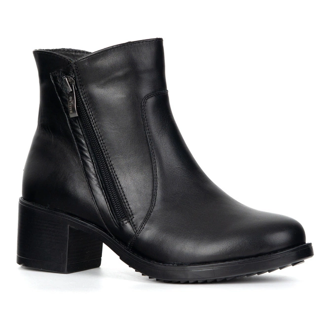 Skórzane damskie botki na obcasie 1020POL czarne lico
