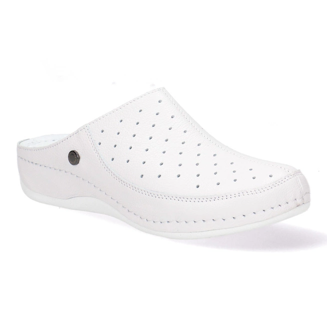 - Pollonus 5-1415-001 Klapki Damskie Białe+Perforacja