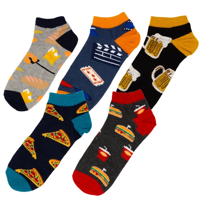 Modne, kolorowe i wesołe skarpety bawełniane w kolorowe wzory. Zestaw 5 par.