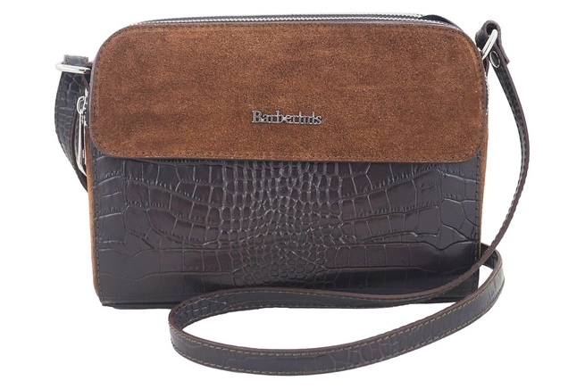 Stylowa torebka crossbody trzykomorowa została wykonana ze skóry naturalnej licowej w połączeniu ze skórą naturalną zamszową.