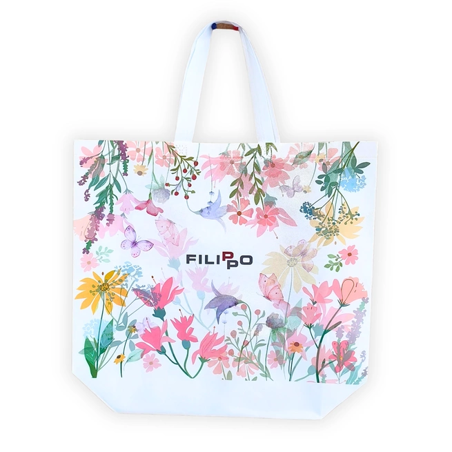 Torba zakupowa wykonana z włókniny typu spunbond to praktyczny i estetyczny wybór na co dzień. Świetnie sprawdzi się podczas zakupów, w podróży lub jako eleganckie opakowanie prezentowe. Materiał jest lekki, wytrzymały i odporny na wilgoć, dzięki czemu torba zachowuje kształt i świeży wygląd przez długi czas. Wygodne uchwyty pozwalają nosić ją w dłoni lub na ramieniu, a dekoracyjny nadruk na froncie nadaje jej modnego, współczesnego charakteru.