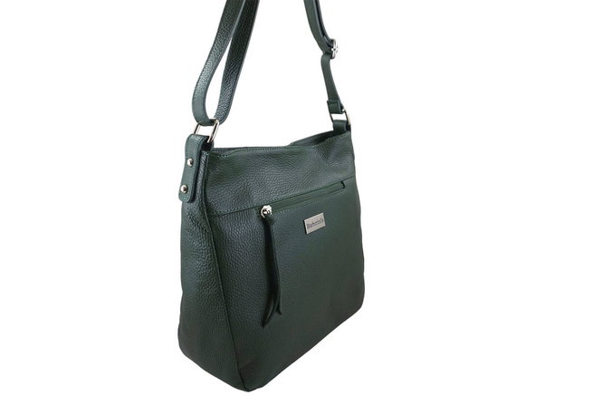 Torebka codzienna skórzana damska w kolorze zielonym ciemnym jest wykonana ze skóry naturalnej licowej. W najnowszej kolekcji galanterii skórzanej proponujemy wygodną i pojemną torebkę, którą zaprojektowano tak, aby zmieściła to co niezbędne do pracy lub na krótki weekendowy wyjazd. Poręczne kieszenie doskonale utrzymają porządek i z łatwością znajdziesz to czego szukasz - wszystko będzie na swoim miejscu. Praktyczna torebka codzienna skórzana damska na wygodnej długości regulowanym pasku to propozycja dla Pań ceniących gustowne dodatki swobodnej garderoby na każdy dzień, zwracających uwagę na wygodę oraz wyróżnienie codziennego outfitu. Gwarantujemy zadowolenie z zakupionych produktów - najnowsze trendy, stonowane kolory oraz subtelne ozdoby przemawiają za wyborem torebki oraz portfela w naszym sklepie.