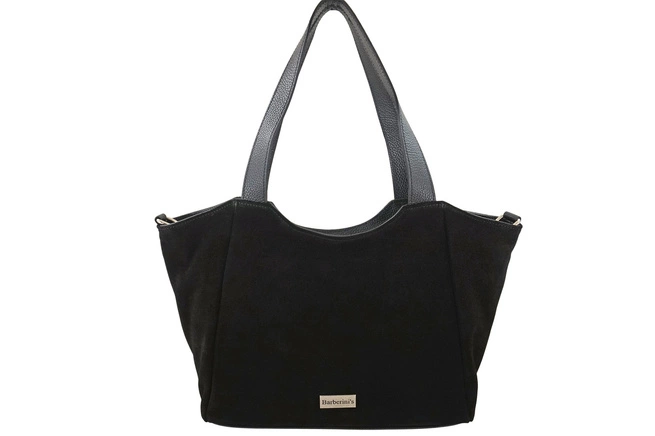Wnętrze torebki: całość została wykończona srebrnymi okuciami, podkreślającymi elegancję i minimalistyczny styl. Torebka jest zasuwana, dzięki czemu zapewnia bezpieczeństwo przechowywanych przedmiotów. Funkcjonalna torebka damska zamszowa typu worek wyposażona jest w dwa komfortowe uchwyty (długość 50cm, wysokość 25cm, szerokość uchwytu 2,5cm) do noszenia w dłoni lub na ramieniu, a także w dodatkowy, regulowany pasek (maksymalna dł. 122cm, maksymalna wys. 64cm, szerokość paska 2cm), który umożliwia noszenie jej w sposób bardziej swobodny – na skos lub przez ramię. Wnętrze zostało zaprojektowane z myślą o maksymalnej funkcjonalności: duża zasuwana kieszeń doszyta do spodu, która pełni rolę przegrody i praktycznie dzieli wnętrze na dwie części, mała kieszonka na zamek idealna na dokumenty lub drobiazgi, oraz wydzielone miejsce na telefon, ułatwiające szybki dostęp. Dodatkowo, na zewnątrz znajduje się poręczna zasuwana kieszonka. Dzięki dużej pojemności i przemyślanemu wnętrzu sprawdzi się na co dzień – do pracy, na uczelnię, na zakupy, a także podczas weekendowych wyjazdów.