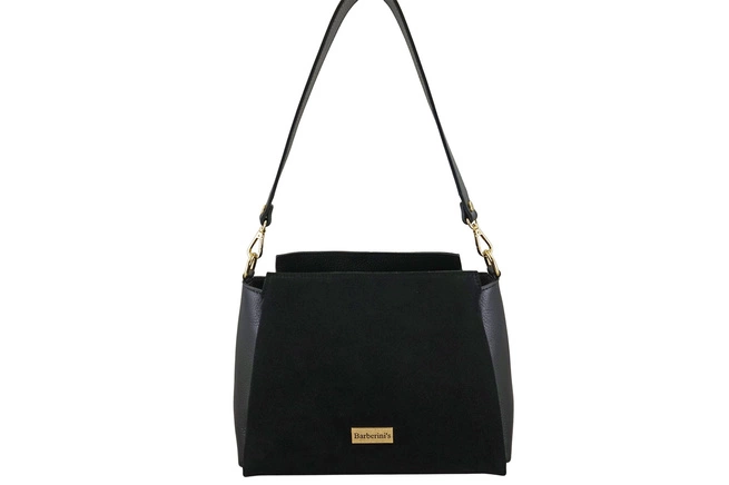 Torebka miejska z naturalnego zamszu i skóry - Czarna