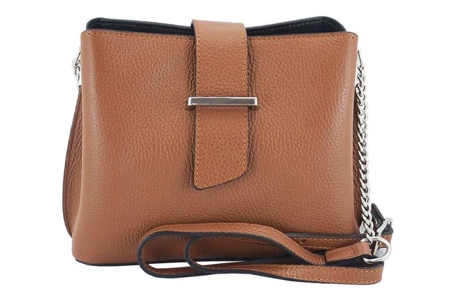 Torebka wizytowa na ramię została wykonana z naturalnej gładkiej skóry licowej.
