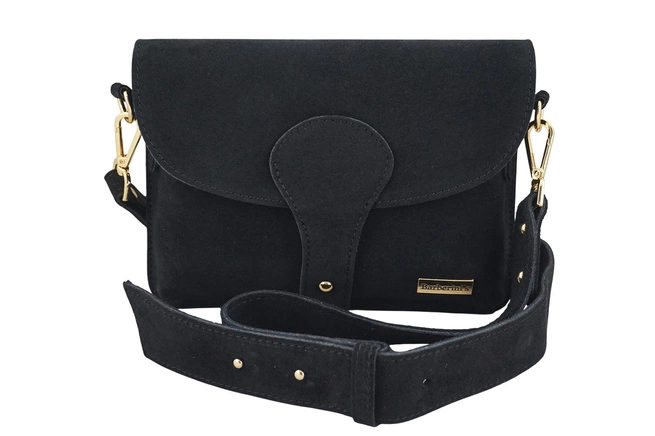 Zamszowa listonoszka na szerokim pasku - Czarna