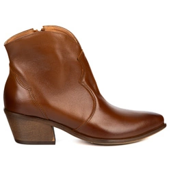 Olivier Monroe – damskie botki skórzane w stylu kowbojek brązowe lico