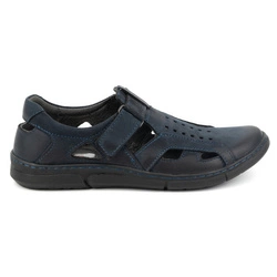 Buty męskie skórzane wsuwane przewiewne na rzep 312KZ granatowe