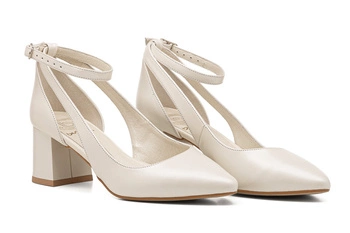 Czółenka skóra z paskiem wokół kostki stabilne ekru Mila