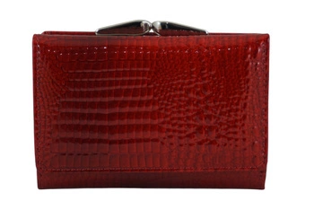 Portfel skórzany damski lakierowany na zatrzask - Czerwony