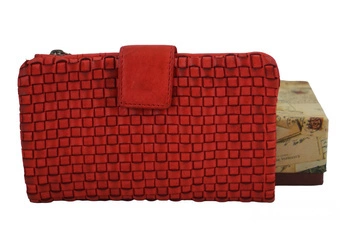 Ekskluzywny portfel z miękkiej skóry - Czerwony