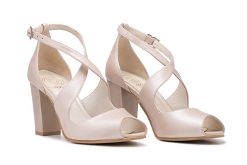 Sandałki taneczne IDA LATO skórzane perła beż na stabilnym obcasie