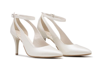 Szpilki taneczne skórzane zapinane na kostkę z wycięciem ekru LIVIA
