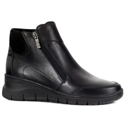 Kozaki barefoot Vivian skórzane do połowy łydki zimowa podeszwa zero drop czarne licowe